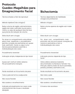 Nosso interesse agora é comparar duas destas técnicas: Protocolo Guedes-Magalhães para Emagrecimento Facial e bichectomia.