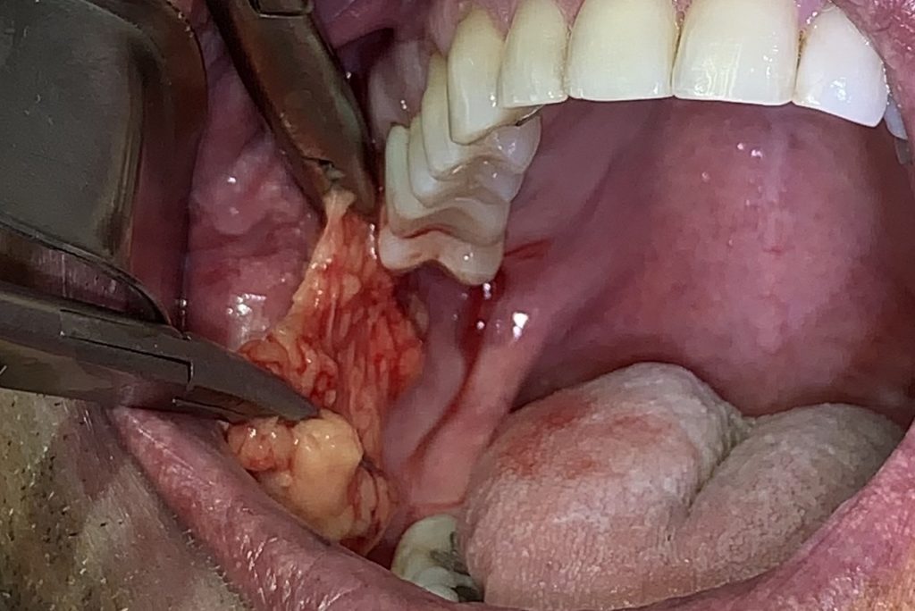 Já nesta outra foto, observamos como a bola de Bichat é vascularizada e sangrante.